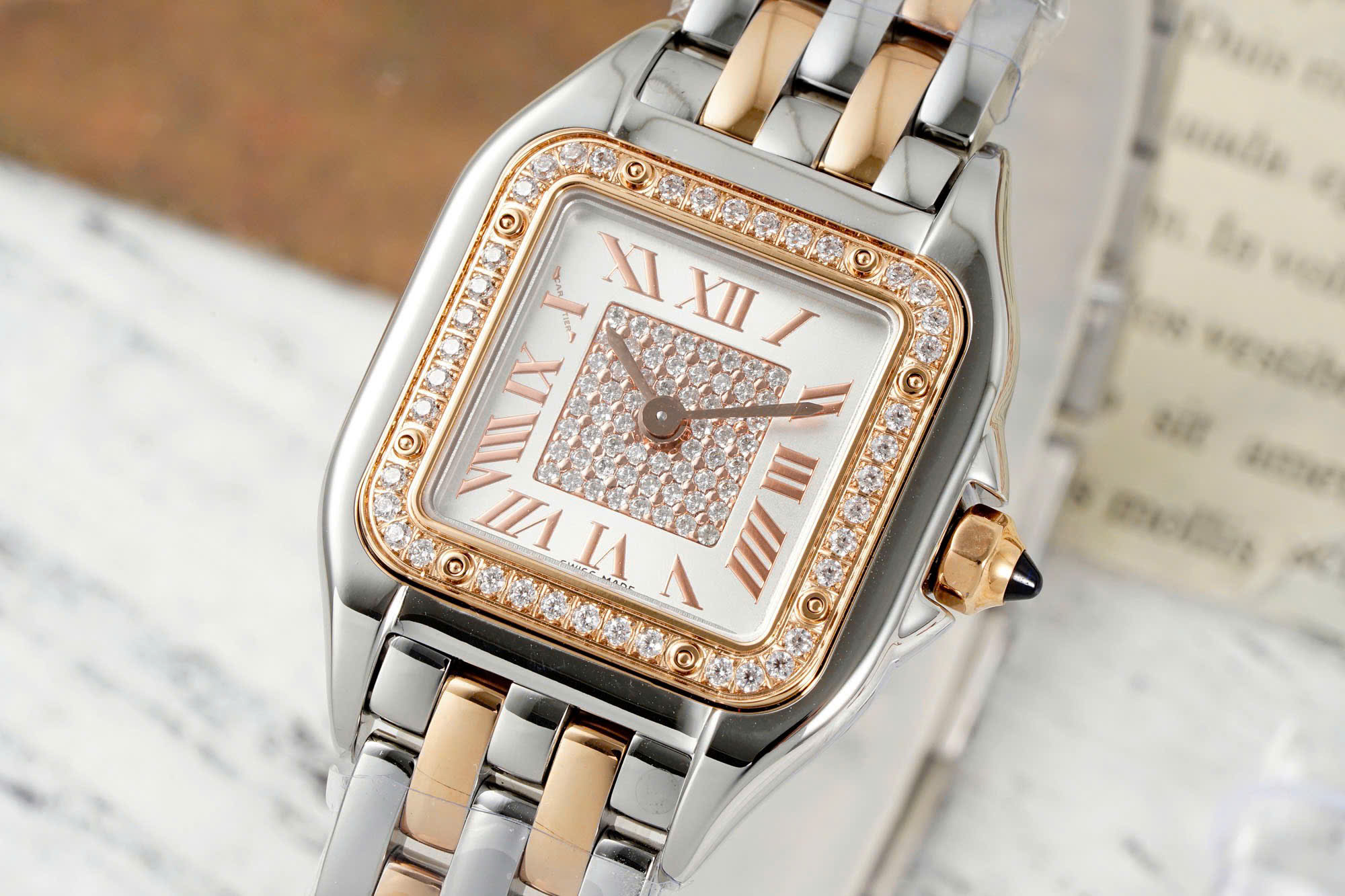 Cartier Panthere Imitation Watches White Dial Case Two Tone 22x30mm