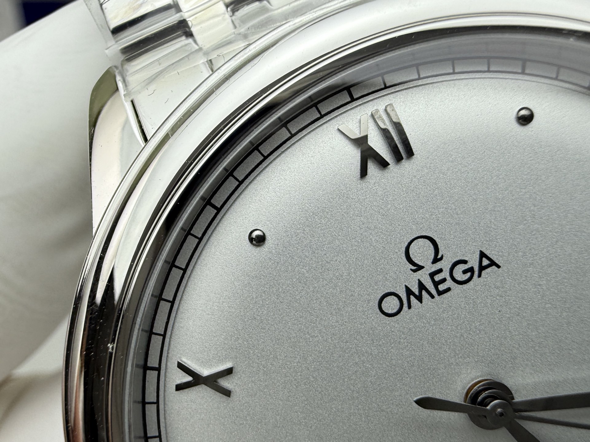 Đồng Hồ Omega De Ville Prestige Rep Cao Cấp Mặt Trắng Phun Cát 39.5mm