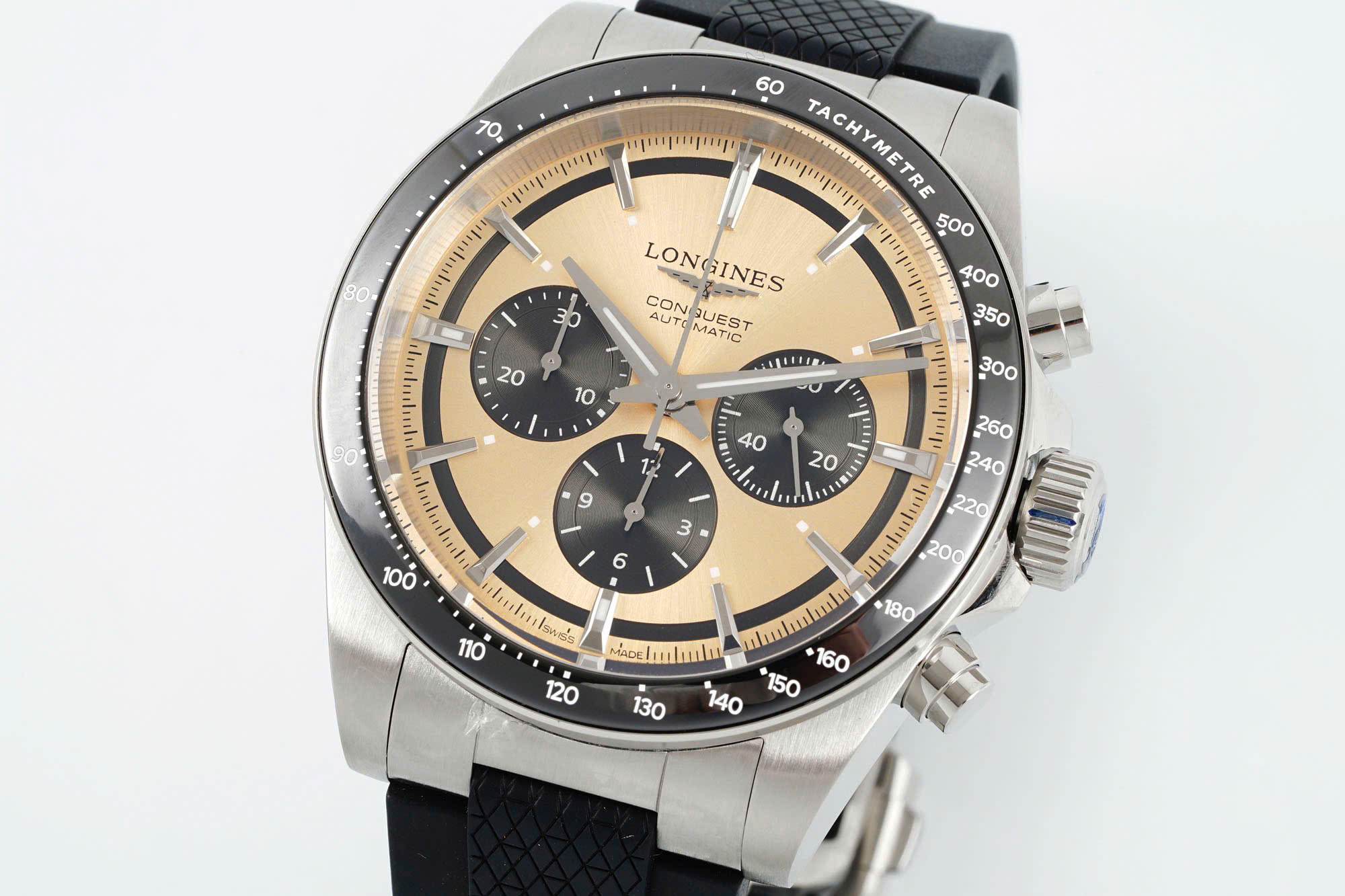 Longines Conquest Imitation Watches Beige Dial Rubber Strap AF Factory 42mm