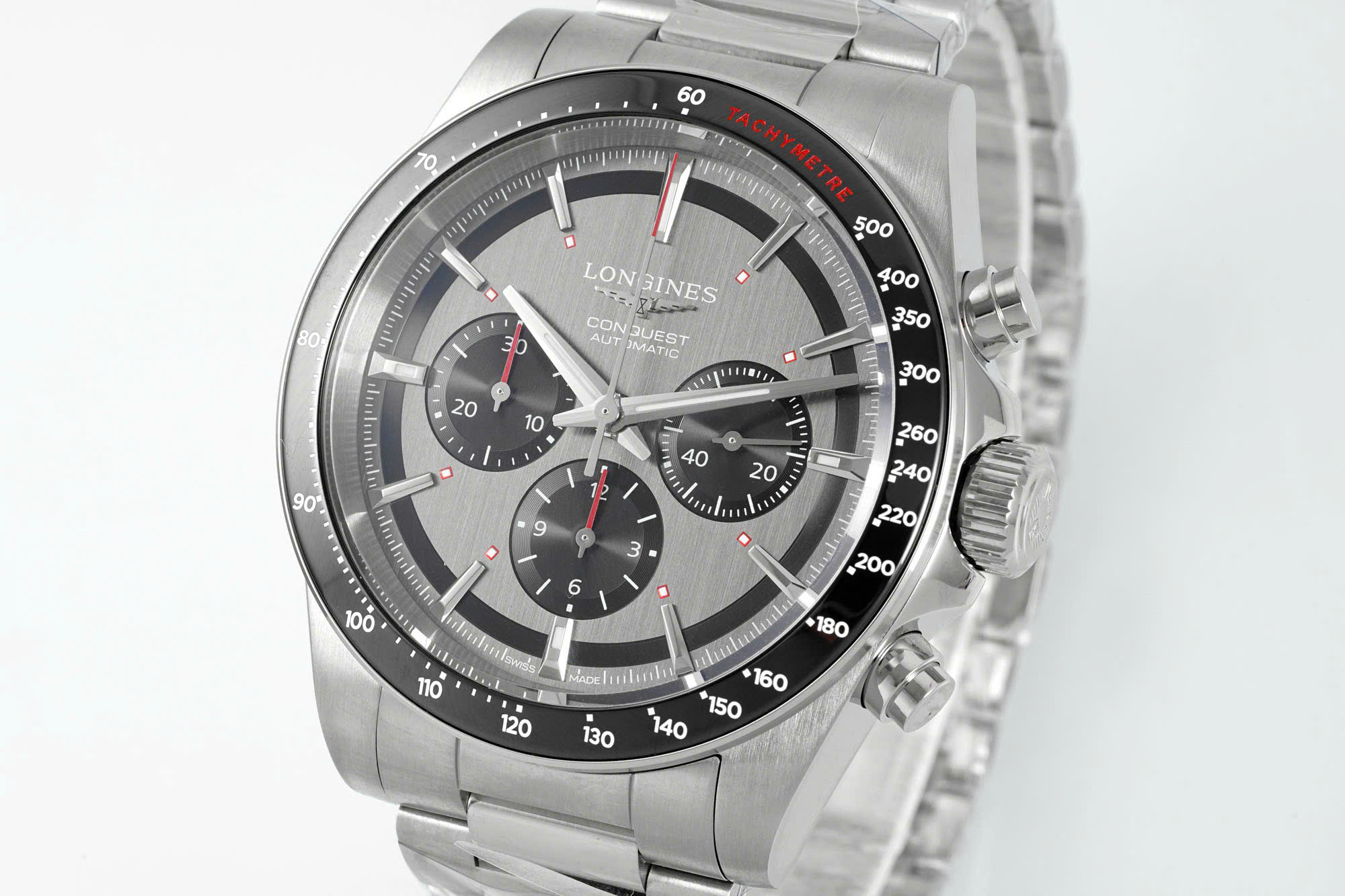 Longines Conquest Replica Watches Gray Dial Metal Strap AF Factory 42mm